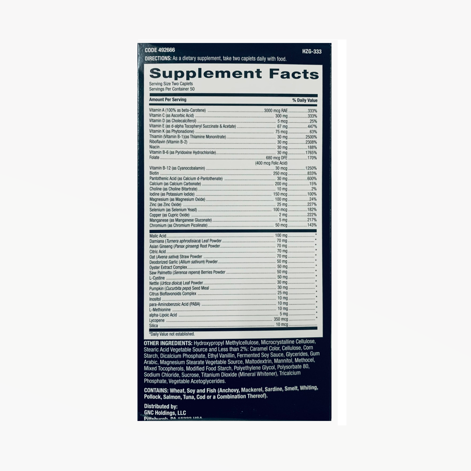 Mega Men® Multivitamin contains a variety of daily dietary nutrients, which can fully fulfill men's daily needs, regulate metabolism and delay aging, and maintain a healthy lifestyle. The product additionally formulated with powerful antioxidant ingredients such as American saw palmetto extract, lycopene, and pumpkin seed extract to promote men's health. A sustained release function of up to 5 hours helps to fight free radicals that can be produced during intense exercise, enhance physical strength and boost your energy throughout a day.