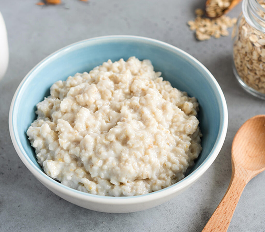 Unflavored instant oatmeal with a scoop of high-quality protein, like whey protein concentrate or isolate. Stir in the protein powder after you cook the oatmeal to avoid a clumpy oatmeal situation.
